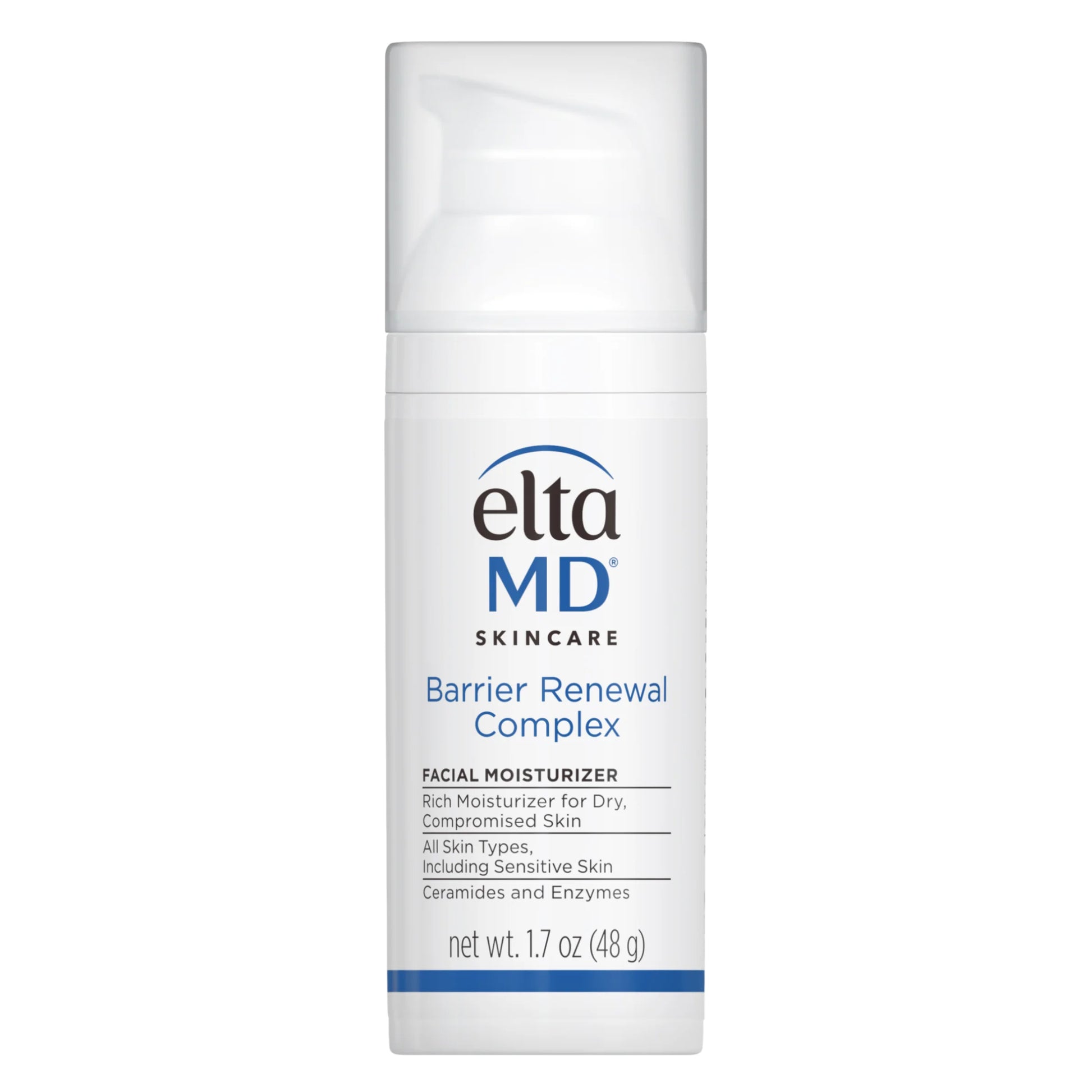 EltaMD Barrier Renewal Complex is an advanced formula that works to visibly minimize the appearance of fine lines and improve elasticity while significantly improving skin texture, tone and pore size. A selected blend of ceramides and other essential lipids help strengthen the barrier and restore its natural hydration system, peptides help smooth fine lines, while enzymes and vitamins help promote gentle exfoliation and minimize the appearance of redness. Clinically proven to moisturize and improve dry, compromised skin after a single application within 24 hours.* Within 21 days, skin appears softer, smoother, healthier and more youthful. Non-comedogenic, fragrance-free, paraben-free.